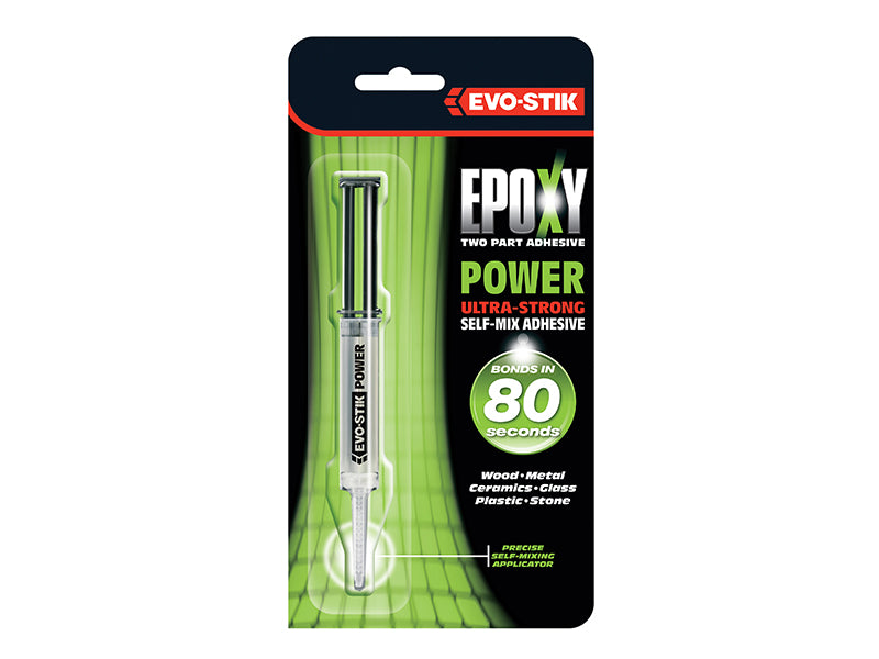 The Evo-Stik Epoxy Power Syringe is a 2-part, multipurpose epoxy adhesive that sets in just 80 seconds with supreme strength and flexibility. Completely set within 3 to 4 minutes. It’s both weather and temperature resistant, and features a precise self-mixing applicator.
