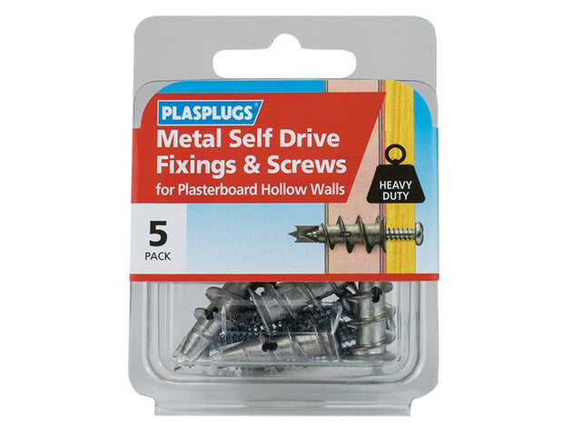Plasplugs - Metal Self Drive Fixings & Screws Pack of 5
