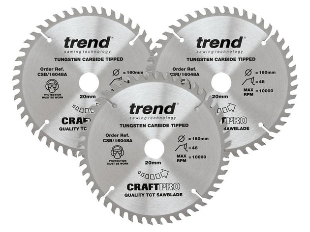 Trend - CraftPro Plunge Saw Blade 160 x 20mm x 48T (Pack 3)