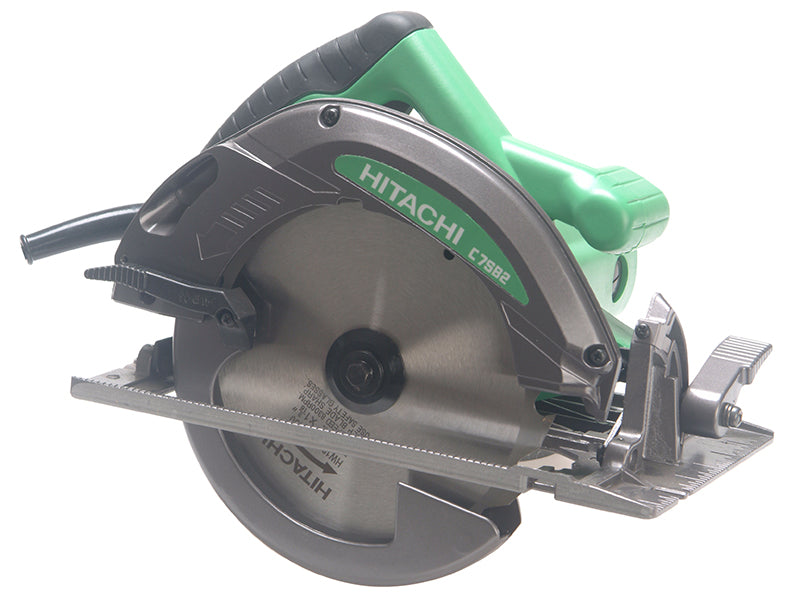The Hitachi C7SB2 Circular Saw has a powerful fan cooled motor and a heavy-duty aluminium base with scale. There is no riving knife, which means easier plunge cutting. It is fitted with a soft-grip handle, easy access bevel leveller, easy access cutting depth adjustment.