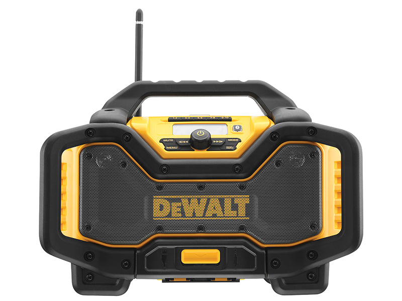 The DEWALT DCR027 FlexVolt XR Radio has a DAB+ and FM tuner to receive digital and analogue radio signals. Its also a 3A XR charger (with charge indicator LED light) which accepts DEWALT 18 Volt XR Li-Ion batteries and 54 Volt FlexVolt XR batteries.