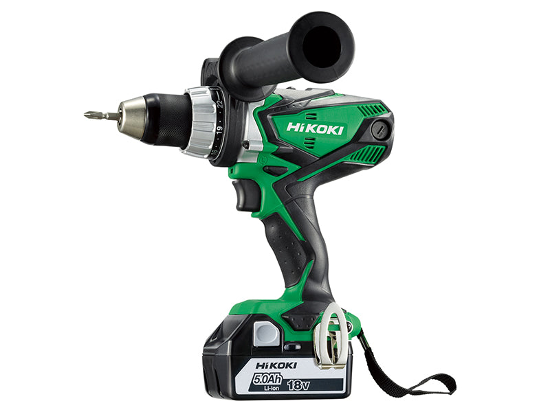 The HiKOKI DS18DSDL Drill Driver is a powerful drill/driver with high capacity 5.0Ah Li-ion batteries, that have double the performance of 3.0Ah Li-ion batteries. The lightweight slide on batteries have a multiplex protection circuit for maximum battery life, and are the same size and weight as 3.0Ah/4.0Ah Li-ion batteries.