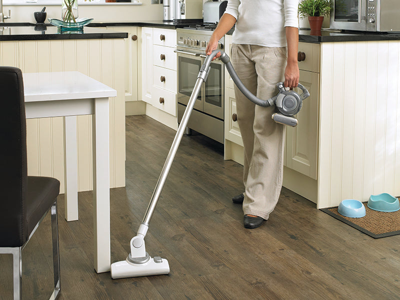 This model is supplied with the Floor Extension Kit which allows you to clean hard floor and small carpeted areas with the easy to steer floor kit. Includes long and short crevice tools and soft brush for cleaning versatility and the charging docking station stores unit and accessories.