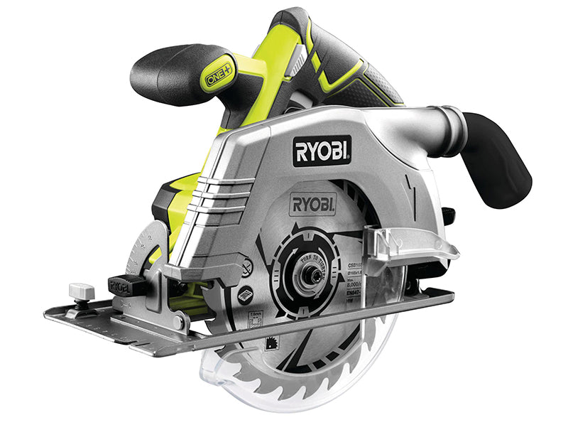 The Ryobi R18CS-0 ONE+ 18V 165mm Circular Saw is ideal for making long straight cuts, trimming sheet wood to size, cutting kitchen worktops, flooring or to make quick and accurate cross cuts in timber. It offers impressive cut capacities, 52mm at 90° and 36mm at 45°. With tool less depth and bevel adjustments, it's quick and easy to set up the saw. The rotatable dust port helps keep the cut line clear and allows you to work in a dust free environment by connecting to a vacuum.