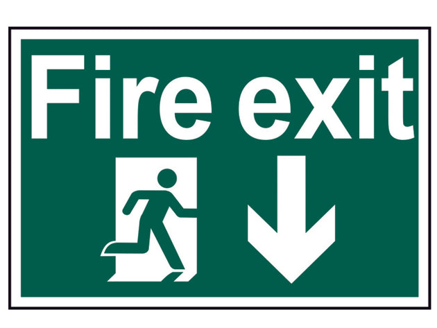 Scan - Fire Exit Running Man Arrow Down - PVC 300 x 200mm