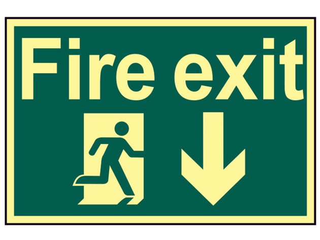 Scan - Fire Exit Running Man Arrow Down - Photoluminescent 300 x 200mm