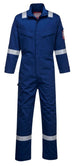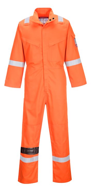 This coverall is perfect for the demands of the offshore industry. Constructed with a highly innovative flame-retardant fabric with high visibility reflective tape double stitched for enhanced visibility. Meeting all the required EN standards, features include triple stitched seams, high visibility strips on shoulders, arms and legs, concealed 2-way front brass zip and two front slant chest pockets with concealed brass zips.
