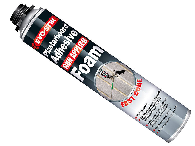 EVO-STIK Plasterboard Adhesive Foam is a multipurpose adhesive that makes fitting plasterboard simple and mess-free. It's also ideal for bonding many popular building substrates. Sticks plasterboard, insulation board, floorboards and adhesive/bathroom boards. Quick and easy to use.