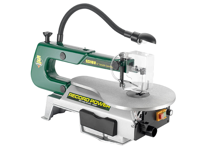 The SS16V also has a flexible work light which can be adjusted to light the work piece and eliminate troublesome shadows which can be a real obstacle to accurate scrolling. The table tilts from 0 to 45° , allowing bevel cuts and even bowls to be made, making the machine even more versatile.