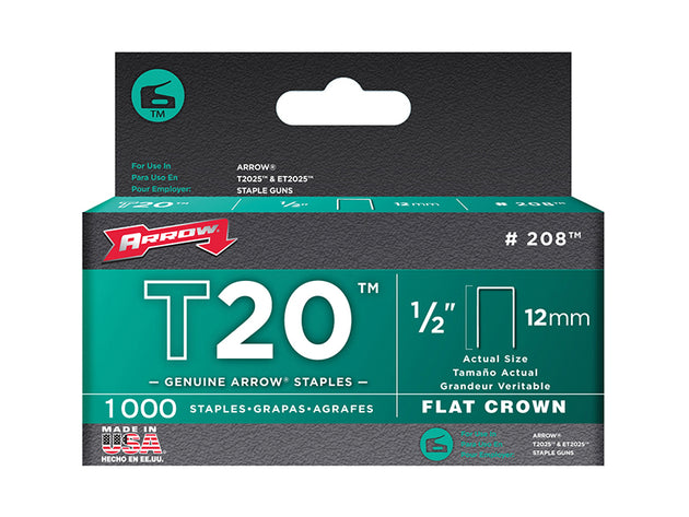 Arrow - T20 Staples 12mm (1/2in) Box 1000