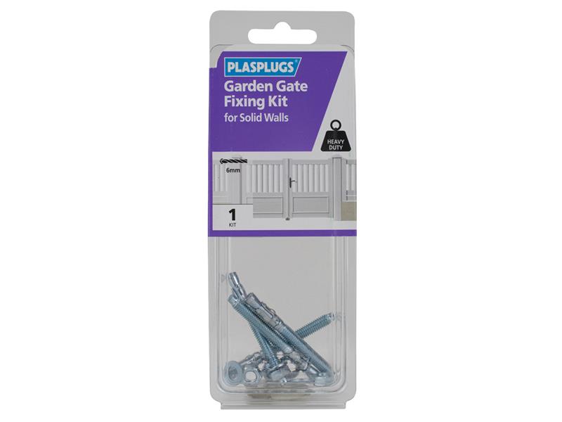 The Plasplugs® Garden Gate Fixing Kit allows you to securely mount a garden gate to a solid wall. Suitable for maximum fixture thickness of 25mm. Requires a 6mm masonry drill bit.