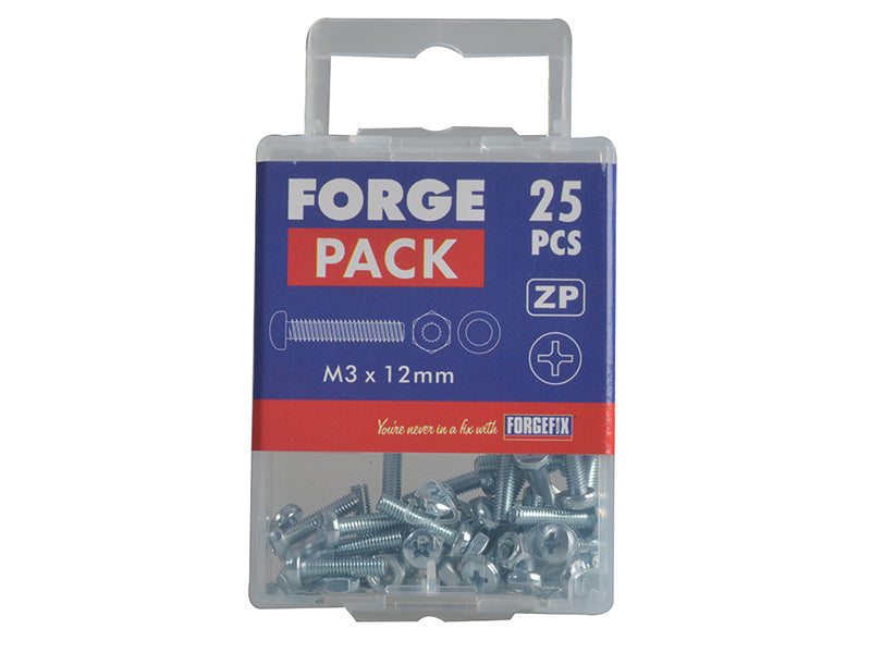Machine Screw Pozi Pan Head ZP M3 x 12mm Forge Pack 25
