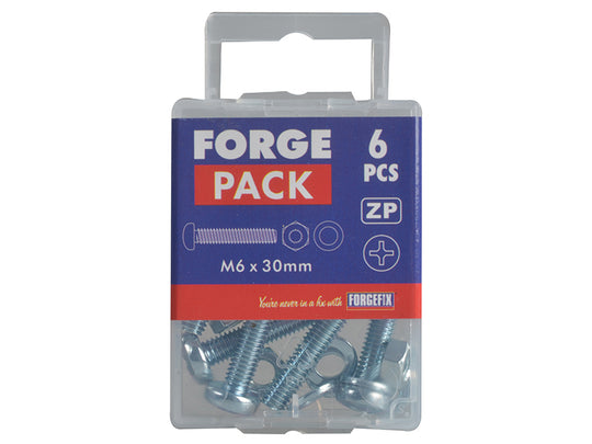ForgeFix - Machine Screw Pozi Compatible Pan Head ZP M6 x 30mm Forge Pack 6