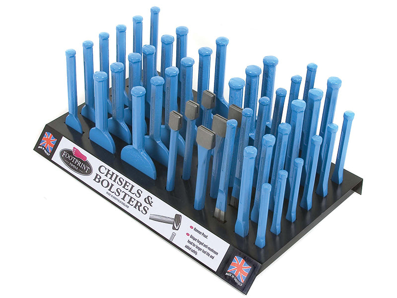The Footprint No.45 Bolsters and Chisels merchandiser stand is an essential part of any hand tool retailer. The stand contains the following products: