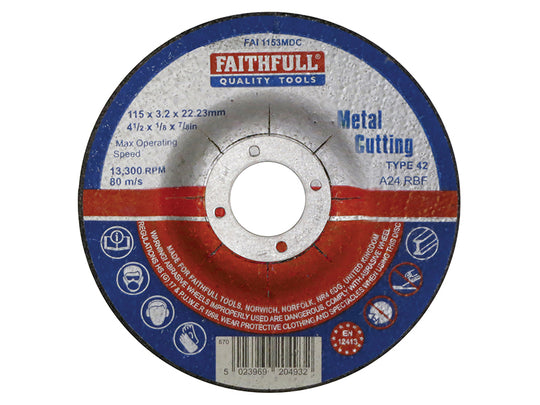 Faithfull - Depressed Centre Metal Cutting Disc 115 x 3.2 x 22.23mm