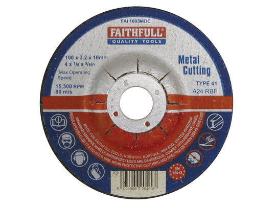 Faithfull - Depressed Centre Metal Cut Off Disc 100 x 3.2 x 16mm