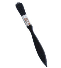 The budget paint brush has a black wooden handle with a metal clasping the black bristles ideal for disposable budget use