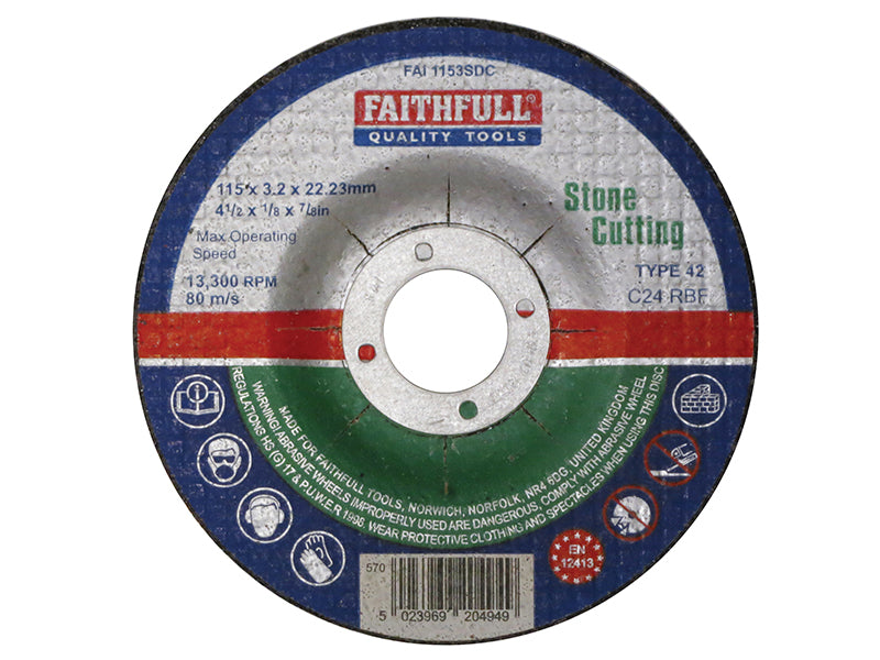 Faithfull - Depressed Centre Stone Cutting Disc 115 x 3.2 x 22.23mm