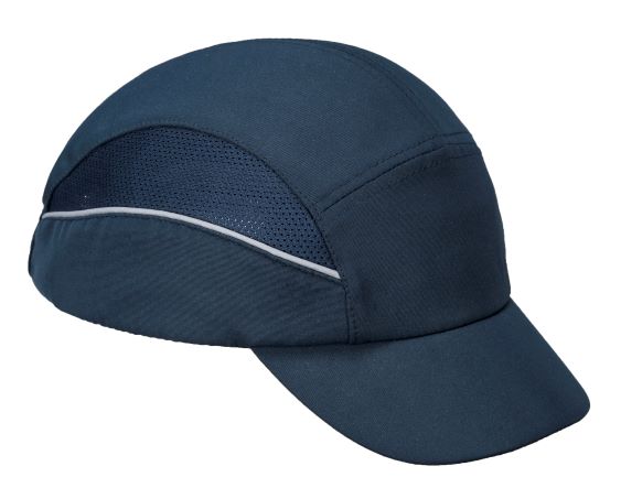Innovative design Bump Cap. Maximised ventilation thanks to the side mesh and wide open windows on the inner shell. Modern textile design with reflective piping for better visibility. The mid-length peak makes this bump cap suitable for all uses. Buckle adjustable size.