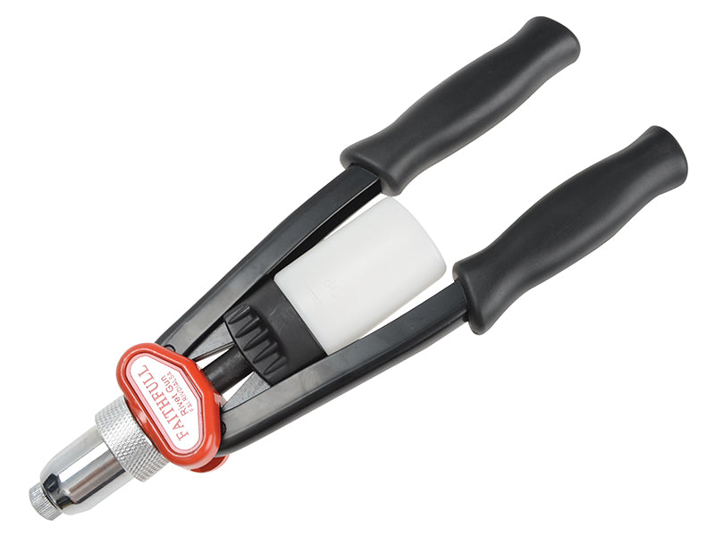 This Faithfull Heavy-Duty Short Arm Hand Riveter has an easy to use 4-in-1 dial head, this handy feature means that no nozzle change is required. For convenience, the riveter also has a built-in mandrel collector and a return spring for easy loading and ejecting.