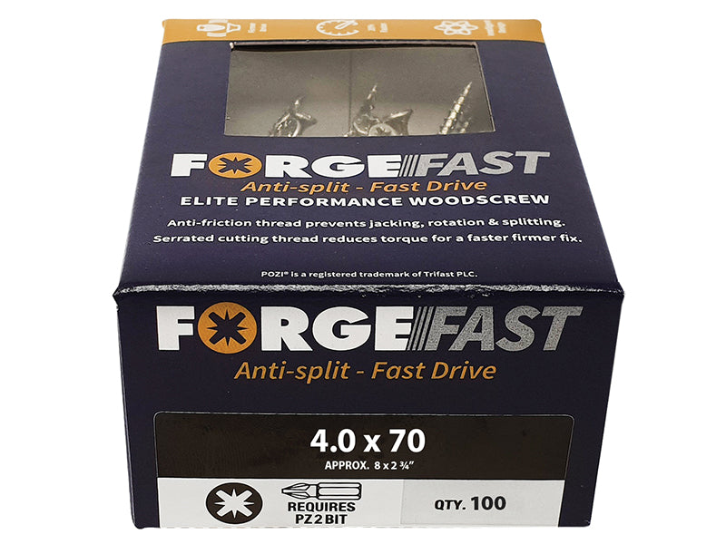ForgeFix - ForgeFast Exterior Elite 2000 Pozi Compatible Wood Screw 4 x 60mm Box 200