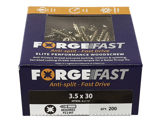 ForgeFix - ForgeFast Pozi Compatible Elite Performance Wood Screw ZY 3.5 x 30mm Box 200