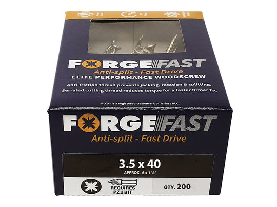 ForgeFix - ForgeFast Pozi Compatible Elite Performance Wood Screw ZY 3.5 x 40mm Box 200