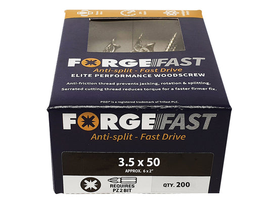 ForgeFix - ForgeFast Pozi Compatible Elite Performance Wood Screw ZY 3.5 x 50mm Box 200