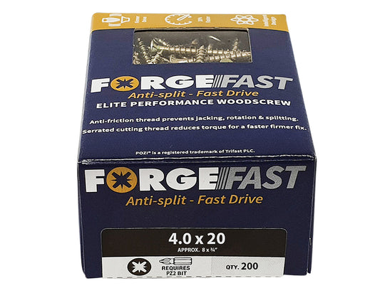 ForgeFix - ForgeFast Pozi Compatible Elite Performance Wood Screw ZY 4.0 x 20mm Box 200