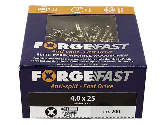ForgeFix - ForgeFast Pozi Compatible Elite Performance Wood Screw ZY 4.0 x 25mm Box 200