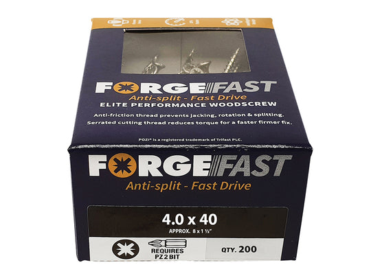 ForgeFix - ForgeFast Pozi Compatible Elite Performance Wood Screw ZY 4.0 x 40mm Box 200