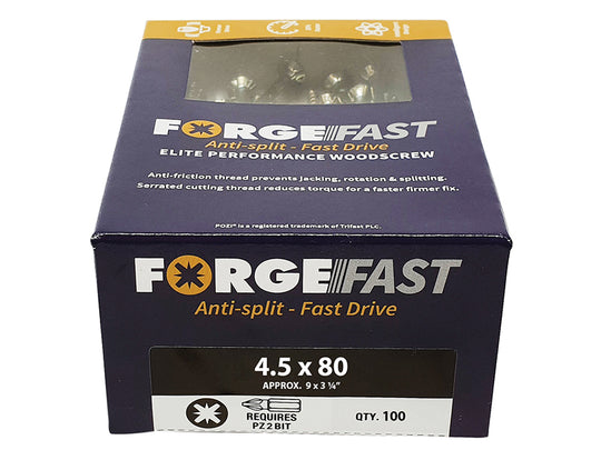 ForgeFix - ForgeFast Pozi Compatible Elite Performance Wood Screw ZY 4.5 x 80 mm Box 100