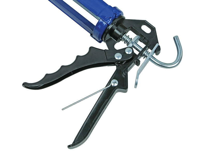 The ratchet has a double spring mechanism for positive and precise sealant feed when the trigger is pulled, and an instant return upon release. Will accept all standard size adhesive and sealant A handy nozzle cleaning pin is provided on the handle.