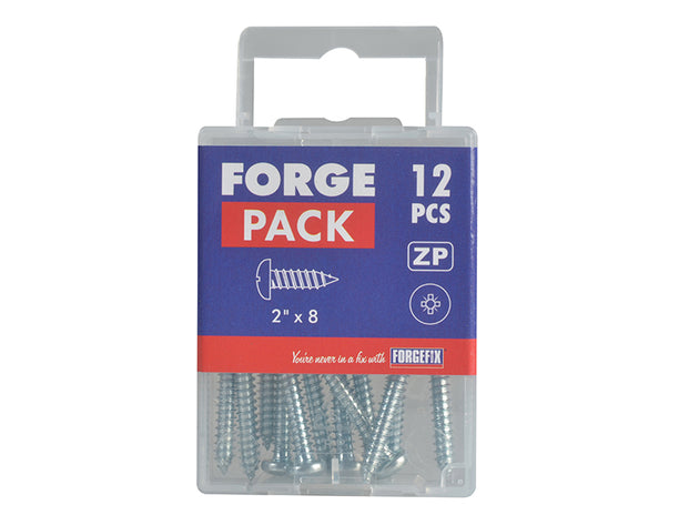 ForgeFix - Self-Tapping Screw Pozi Compatible Pan Head ZP 2in x 8 ForgePack 12