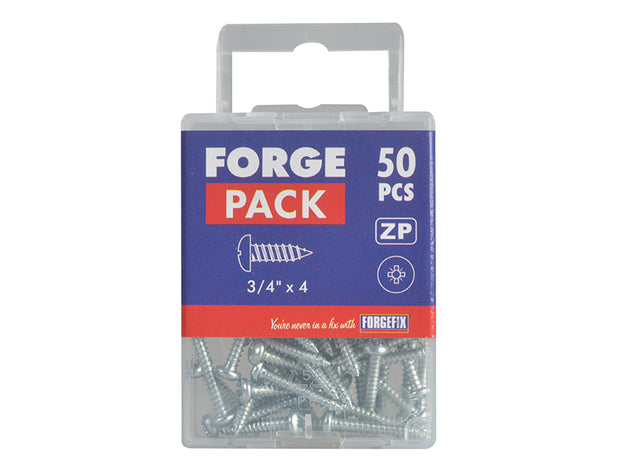 ForgeFix - Self-Tapping Screw Pozi Compatible Pan Head ZP 3/4in x 4 ForgePack 50