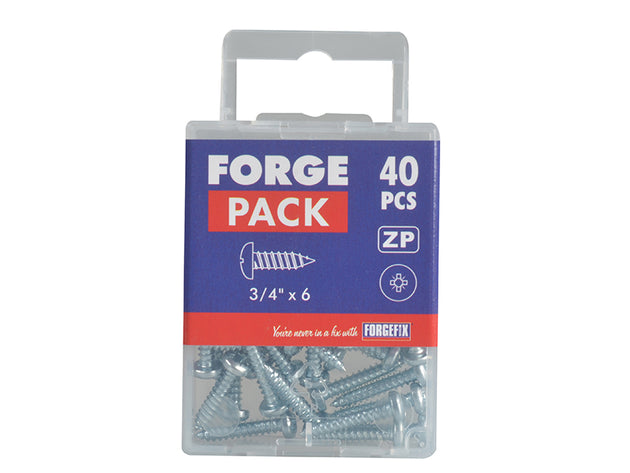 ForgeFix - Self-Tapping Screw Pozi Compatible Pan Head ZP 3/4in x 6 ForgePack 40