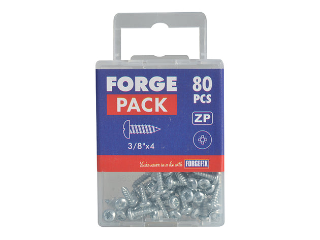 ForgeFix - Self-Tapping Screw Pozi Compatible Pan Head ZP 3/8in x 4 ForgePack 80