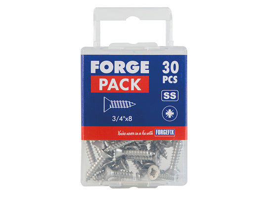 ForgeFix - Self-Tapping Screw Pozi Compatible CSK A2 SS 3/4in x 8 ForgePack 30