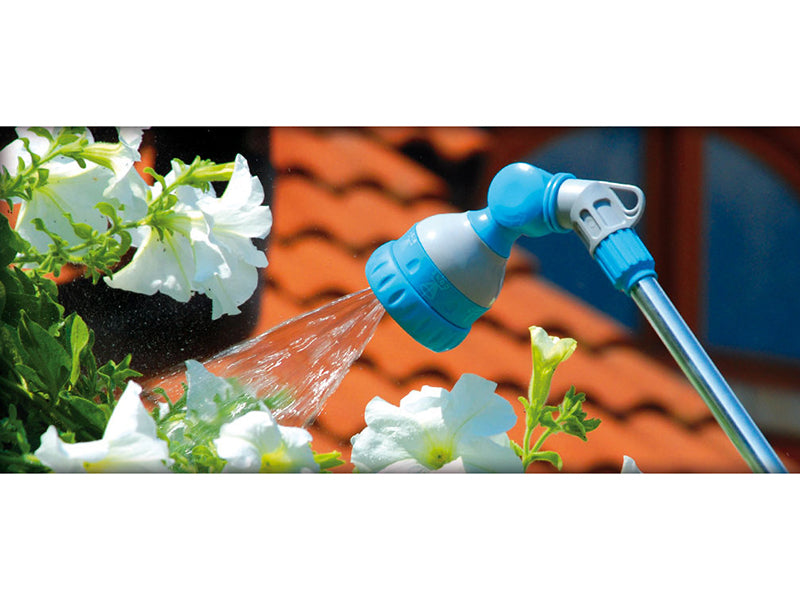 The Flopro Telescopic Watering Lance has 6 flow settings. The lance pole adjusts from 72cm to 102cm for extra reach, and the head rotates 180° for additional flexibility. Water flow is fully adjustable with one hand by adjusting the blue lever at the base of the product. The connectors allow a ‘Snap Fit’ and ensure easy connection to all major watering brands.