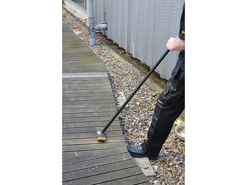 It can be used as a hand brush or with handle (ROU52080). The brush is perfect for scrubbing decking prior to re-painting or patio slabs and general block and concrete surfaces.