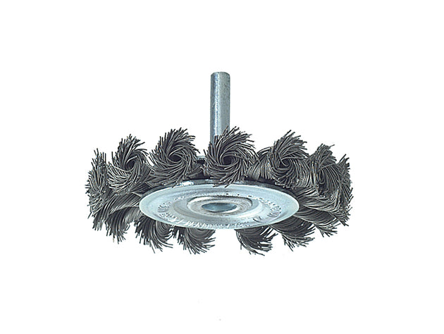 Lessmann - Knotted Wheel Brush with Shank 75 x 12mm, 0.50 Steel Wire Carded