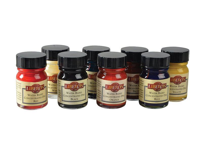 Liberon water-based concentrated dyes can be mixed with water or Liberon Palette Wood Dyes to create individual colours for colouring wood. They are light and fade resistant and come in a range of eight colours. All colours are intermixable. Acrylic formula.