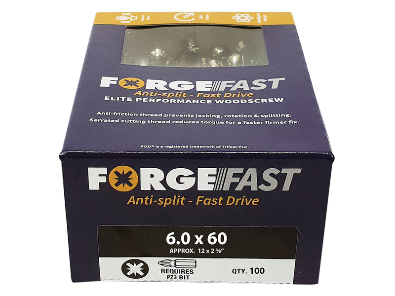 ForgeFix - ForgeFast Exterior Elite 2000 Pozi Compatible Wood Screw 4 x 60mm Box 200