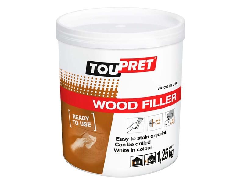 Toupret® Wood Filler is supplied ready-to-use. It can be stained or painted with any type of conventional paint, varnish or stain after 24 hours. It can also be drilled and is very easy to sand. Suitable for both internal and external use. Low odour.