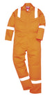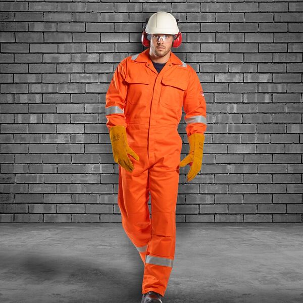 This coverall is perfect for the demands of the offshore industry. Constructed with a highly innovative flame-retardant fabric with high visibility reflective tape double stitched for enhanced visibility. Meeting all the required EN standards, features include triple stitched seams, high visibility strips on shoulders, arms and legs, concealed 2-way front brass zip and two front slant chest pockets with concealed brass zips.