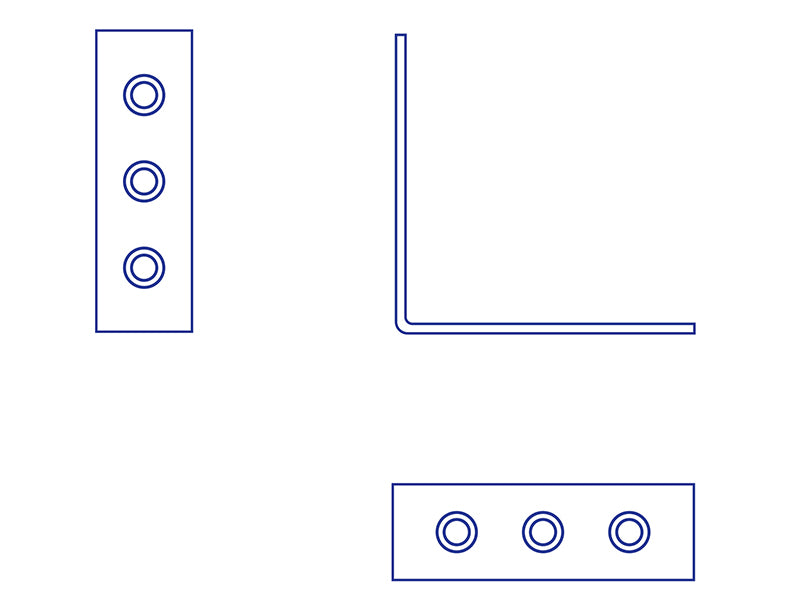 Forge Steel Corner Braces for joining two pieces of wood at right angles and for supporting cupboard joints.