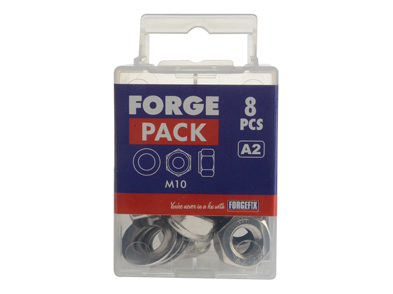 Hexagonal Nuts & Washers A2 Stainless Steel M10 ForgePack 8