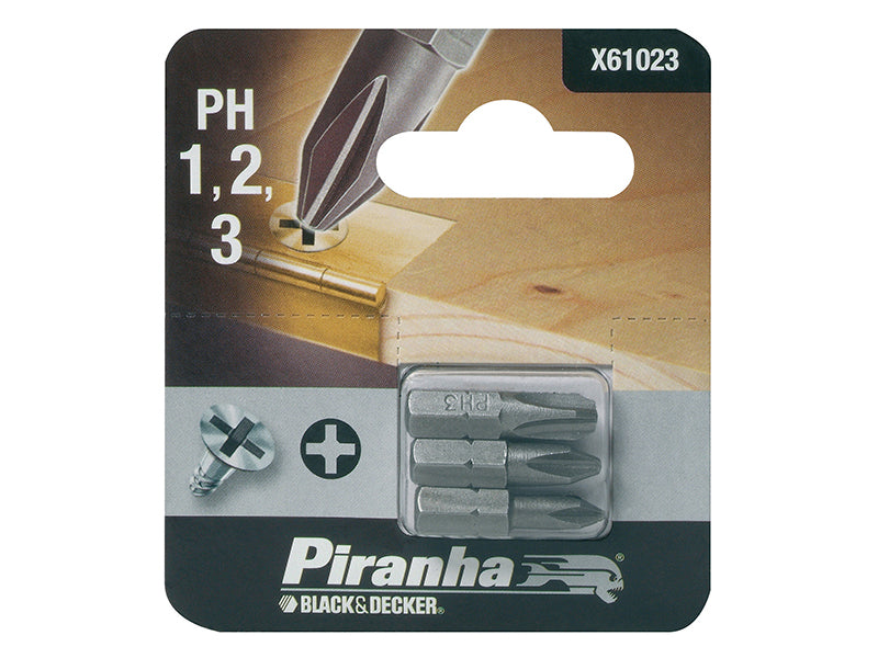 The Black and Decker X61023 Screwdriver Phillips Bits with a 1/4in hexagon drive. They have a hardened core for better grip. Suitable for general purpose applications in metal, wood, plastic and drywall materials.