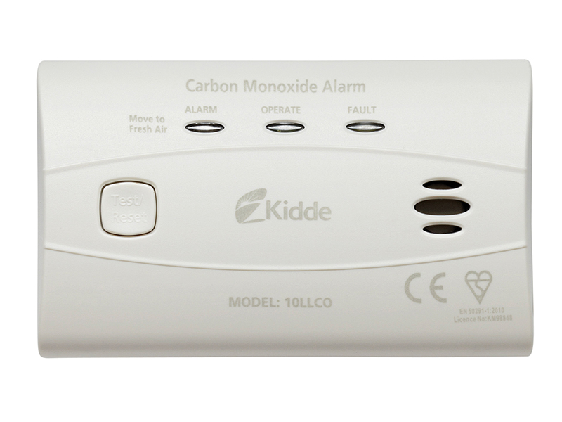 A CO 'Quick-Test' feature temporarily desensitises the CO sensor to allow quick-testing using approved CO sprays. An interrogation feature allows peak level, test history to be analysed by Kidde upon arrangement. The alarm has 3 LEDs - alarm, operate and fault. It's end-of-life alarm alerts the user to replace the alarm. A test/reset button allows regular testing of the alarm function.