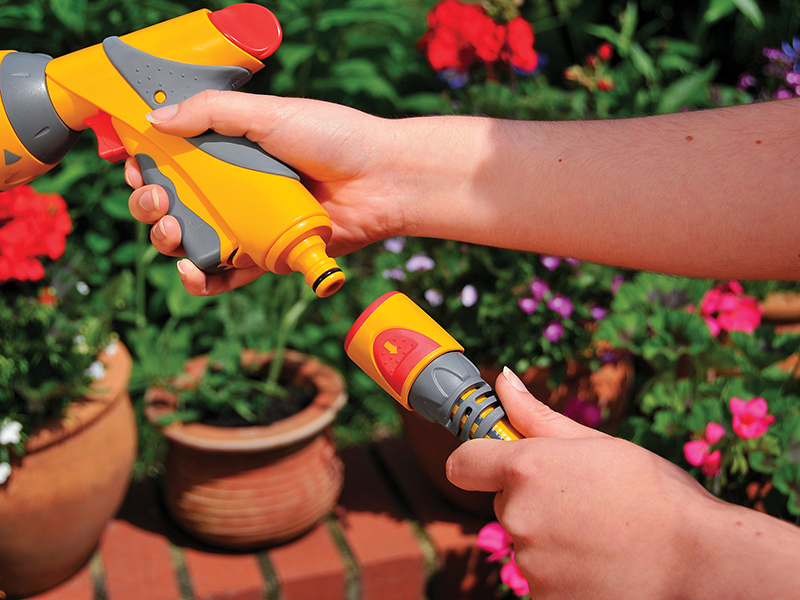 The Hozelock AquaStop Plus Connector has an internal valve that stops the water flow when an accessory (e.g. a spray gun) is disconnected. This saves having to go back to the tap to turn the water off when switching between accessories. It also helps save water in the garden by stopping the water flow, thus preventing water being wasted.